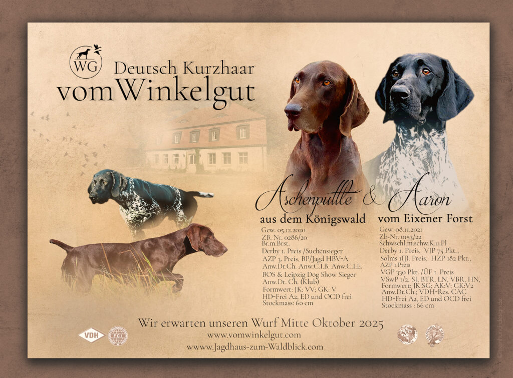 Hier finden Sie die aktuellen Deutsch-Kurzhaar Würfe von Klub Kurzhaar Berlin (Stammklub DK) e.V. Züchtern.